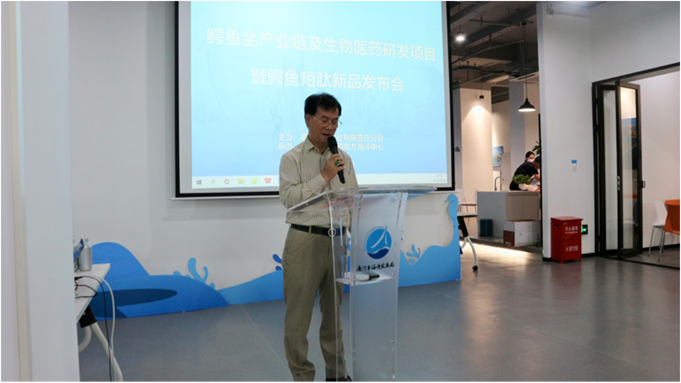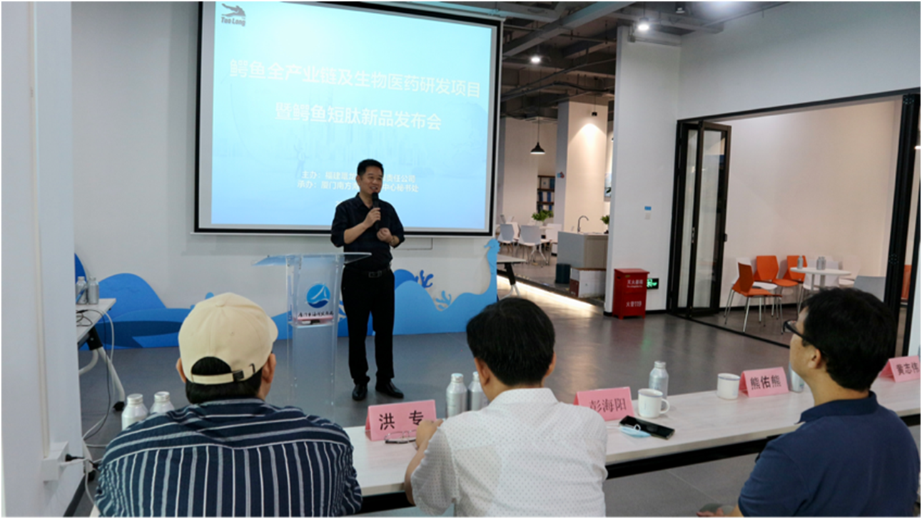 在厦门市政府及厦门海洋发展局的支持下,2022年8月30日福建鼍龙实业有限责任公司(以下简称“鼍龙”)在厦门海洋经济公共服务中心举办“海洋企业日”活动,活动主要围绕“鳄鱼全产业链及生物医药研发项目暨鳄鱼短肽新品发布会”展开。厦门南方海洋中心副主任彭海阳,标盟机构主席黄志伟,自然资源部第三研究所洪专教授,福建省健康产业协会会长周中华,中国老兵网董事长蔡明作,创业树税务师事务所有限公司所长吴健,厦门奥森泰商贸有限公司董事长赵森受邀参加会议。