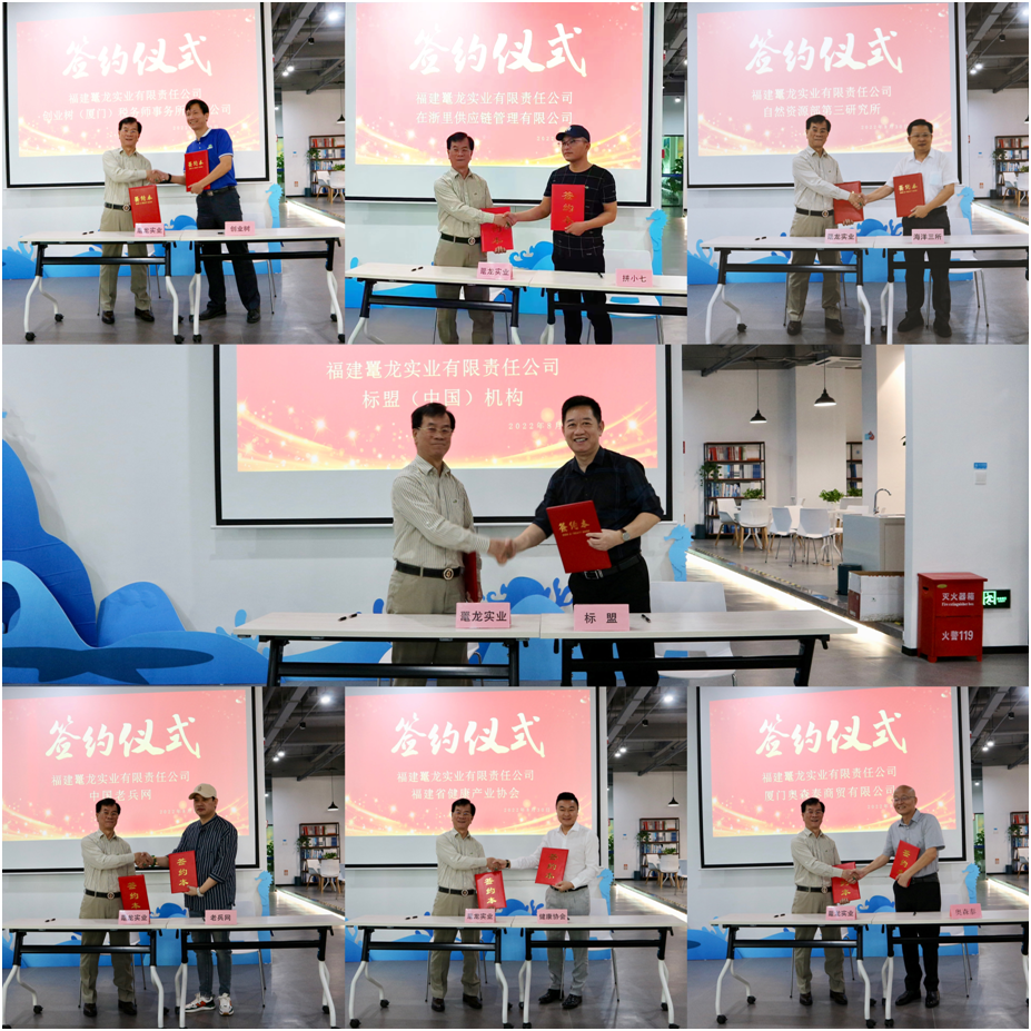 福建鼍龙实业有限责任公司与标盟(中国)机构、在浙里供应链管理有限公司、自然资源部第三研究所、福建省健康产业协会、中国老兵网、创业树(厦门)税务师事务所有限公司、厦门奥森泰商贸有限公司签订合作协议。
